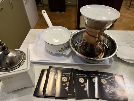 Auch durfte ich wieder das Institut für Kaffee-Expert:innen-Ausbildung vertreten und mit meinen Gästen bei einer Tasse frisch gemahlenen und aufgebrühten Arabica-Kaffee persönlich über die Unterschiede der Kaffeesorten und Zubereitungsarten sowie über die traditionelle Wiener Röstung sprechen, ein Kriterium der österreichischen Qualitätsröster.